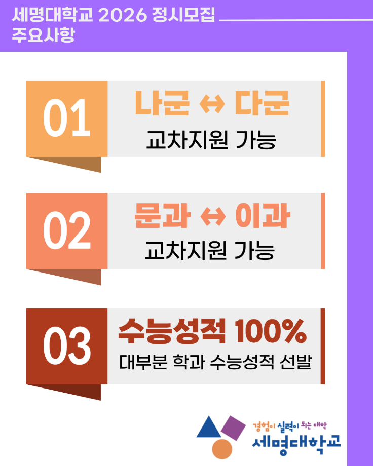 본문 시작 홈으로 커뮤니티 학과소개 교수소개 교육과정 커뮤니티 홈페이지가이드 포토갤러리 학과공지 학사일정 채용정보 및 자료 학생회 포토갤러리 포토갤러리 페이스북 트위터 프린트 세명대학교 2026학년도 정시모집 안내 재난안전학과 856 2025-12-26 목록 이전청룡체전 축구 종목 경기 순간들 다음 2026학년도 신입생 '꿈 설계학기오리엔테이션' 안내 만족도조사 만족도 조사 이 페이지에서 제공하는 정보에 대하여 만족하시나요? 매우만족 만족 보통 불만족 매우불만족