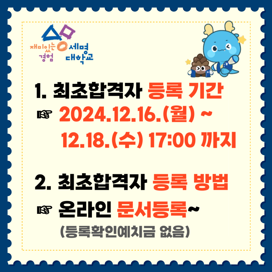 본문 시작 홈으로 커뮤니티 학과소개 교수소개 교육과정 커뮤니티 입학 정보 홈페이지가이드 포토갤러리 학과공지 취업/실습정보 포토갤러리 포토갤러리 페이스북 트위터 프린트 수시모집 최초합격자 발표 안내 전기전자공학과 1954 2024-12-17 수시모집 최초 합격자 발표 안내 입니다..[자세한 내용 클릭] 목록 이전2024학년도 전자공학과 MT 다음 학생들의 통학은 세명대가 책임진다 만족도조사 만족도 조사 이 페이지에서 제공하는 정보에 대하여 만족하시나요? 매우만족 만족 보통 불만족 매우불만족