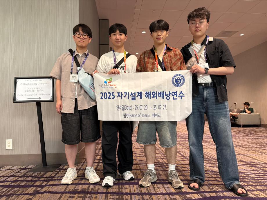본문 시작 홈으로 커뮤니티 학과소개 교수소개 교육과정 커뮤니티 입학 정보 홈페이지가이드 포토갤러리 학과공지 취업/실습정보 포토갤러리 포토갤러리 페이스북 트위터 프린트 2025 자기설계 해외배낭연수 전기전자공학과 758 2025-08-03 2025 자기설계 해외배낭연수 팀명: "페이즈" 연수지: 미국 (LA) 목록 이전세명대학교 전기공학과 캡스톤디자인팀 '청전’, 대한전기학회 하계학술대회 스마트 에너지 챌린지 참가 다음 전기전자공학과_여름학기 공동교육 진행 만족도조사 만족도 조사 이 페이지에서 제공하는 정보에 대하여 만족하시나요? 매우만족 만족 보통 불만족 매우불만족