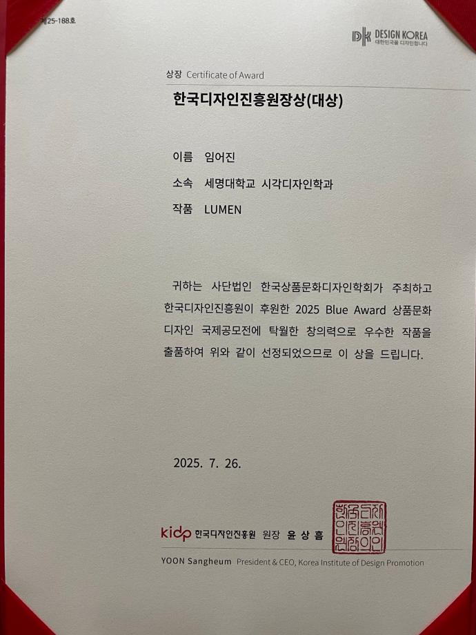 본문 시작 홈으로 학과자랑 학과소개 학과과정 시영소식 입학/취업 AI 학과자랑 SNS소통 홈페이지가이드 학과자랑 학과자랑 갤러리 공모전 동아리 졸업전시회 학과자랑 페이스북 트위터 프린트 2025 블루어워드 국제공모전 - 대상 수상 (임*진 학생) 시각영상디자인학과 850 2025-09-04 대상 수상 축하합니다~ 목록 이전2025학년도 후기(순수외국인) 경희대학교 일반대학원 박사과정 합격 - 이* 학생 다음 2025 자기설계 해외배낭연수 - 시각영상디자인학과 3명(합격) 참여 담당부서 : 시각영상디자인학과 담당자 : - 연락처 : 043-649-1726 최종수정일 : 2024-10-26 만족도조사 만족도 조사 이 페이지에서 제공하는 정보에 대하여 만족하시나요? 매우만족 만족 보통 불만족 매우불만족