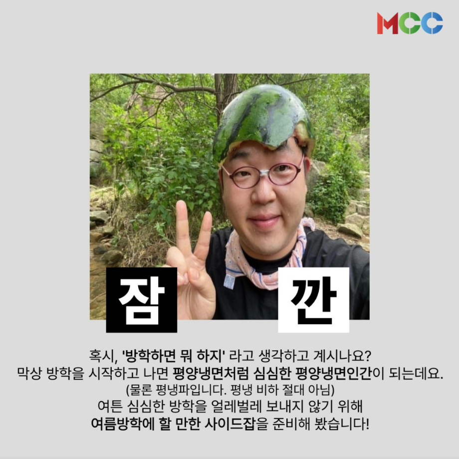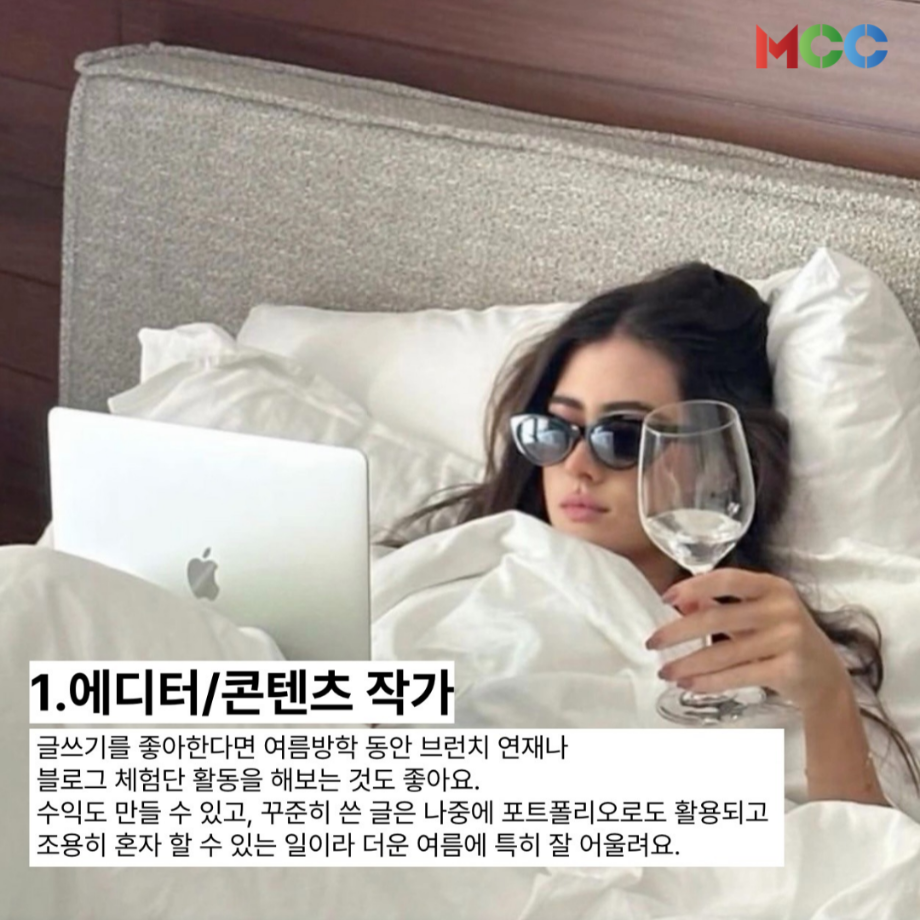 본문 시작 홈으로 MCC News 학과소개 교수소개 학과과정 MCC News MCC SNS 홈페이지가이드 미디어 정보통 학과 및 재학생 교수 및 졸업생 미디어 정보통 미디어 정보통 페이스북 트위터 프린트 ☀️“여름방학에 뭐 하지..?”☀️ 미디어콘텐츠창작학과 1279 2025-06-17 방학에 할 수 있는 사이드잡을 추천해드립니다!😎 1.에디터/콘텐츠 작가 2.썸네일•디자인 외주 3.영상 편집 & 자막 작업 4.온라인 서포터즈 & 대외활동 5.중고거래+스마트스토어 도전 자세한 내용은 @smu_mcc에서! 목록 이전2025 제천시 교육발전특구사업 다음 미콘창 학생들을 위한 자격증 추천 리스트⭐ 담당부서 : 미디어콘텐츠창작학과 담당자 : - 연락처 : 043-649-1741 최종수정일 : 2024-10-26 만족도조사 만족도 조사 이 페이지에서 제공하는 정보에 대하여 만족하시나요? 매우만족 만족 보통 불만족 매우불만족