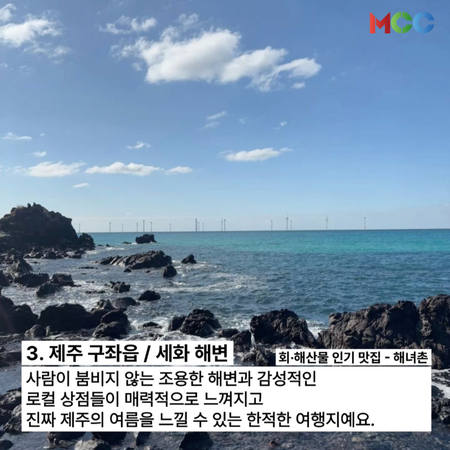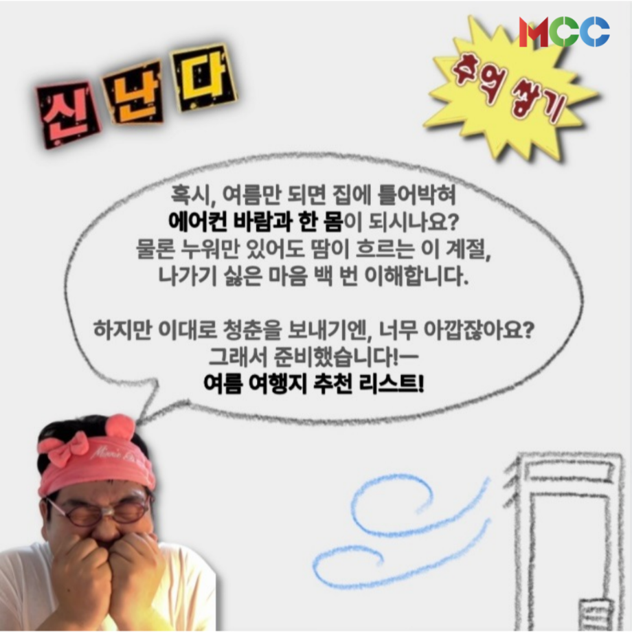 본문 시작 홈으로 MCC News 학과소개 교수소개 학과과정 MCC News MCC SNS 홈페이지가이드 미디어 정보통 학과 및 재학생 교수 및 졸업생 미디어 정보통 미디어 정보통 페이스북 트위터 프린트 여름방학 갈만한 여행지 추천.zip 미디어콘텐츠창작학과 902 2025-07-07 “놀러가고 싶다 격하게..!”😩 🌞여름방학 갈만한 여행지 추천.zip🌞 1.강릉 인목해변 2.통영 욕지도/동피랑마을 3.제주 구좌읍/세화 해변 4.서울 노들섬&한강공원 5.속초 외옹치해변 자세한 내용은 미콘창 인스타그램에서 확인해주세요 @smu_mcc 목록 다음 2025 친환경 에너지 콘텐츠 공모전 다음 미디어콘텐츠창작학과 궁금해?! 담당부서 : 미디어콘텐츠창작학과 담당자 : - 연락처 : 043-649-1741 최종수정일 : 2024-10-26 만족도조사 만족도 조사 이 페이지에서 제공하는 정보에 대하여 만족하시나요? 매우만족 만족 보통 불만족 매우불만족