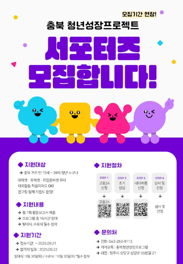 본문 시작 홈으로 MCC News 학과소개 교수소개 학과과정 MCC News MCC SNS 홈페이지가이드 미디어 정보통 학과 및 재학생 교수 및 졸업생 미디어 정보통 미디어 정보통 페이스북 트위터 프린트 충북 청년성장프로젝트 안내 미디어콘텐츠창작학과 1108 2025-09-16 충북 청년성장프로젝트 안내해드립니다. 목록 이전2025학년도 2학기 원어민 교수와의 대화 이전「2025년 농업·농촌 영상·사진 공모전」 담당부서 : 미디어콘텐츠창작학과 담당자 : - 연락처 : 043-649-1741 최종수정일 : 2024-10-26 만족도조사 만족도 조사 이 페이지에서 제공하는 정보에 대하여 만족하시나요? 매우만족 만족 보통 불만족 매우불만족