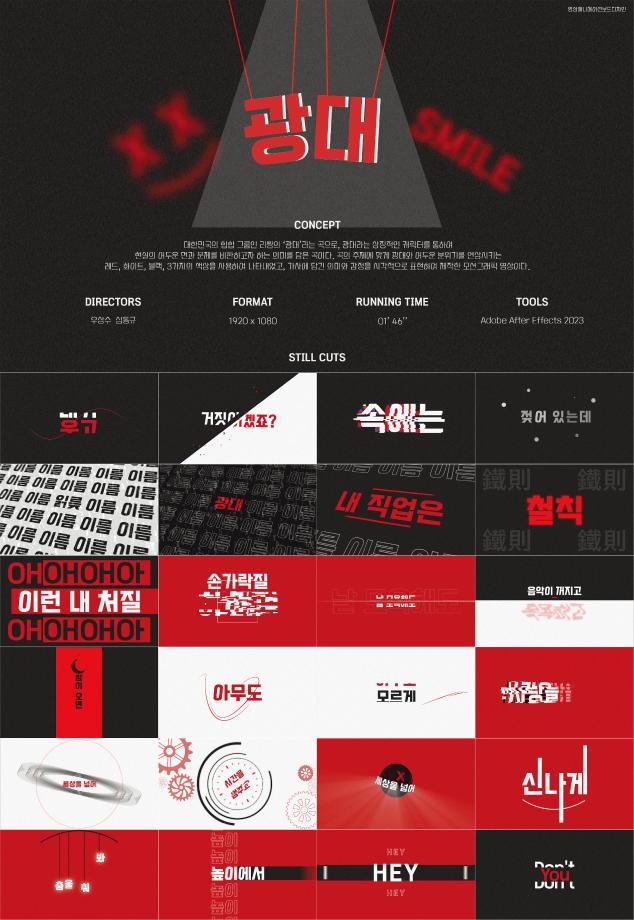 본문 시작 홈으로 학과자랑 학과소개 학과과정 시영소식 입학/취업 AI 학과자랑 SNS소통 홈페이지가이드 졸업전시회 학과자랑 갤러리 공모전 동아리 졸업전시회 2023 졸업작품 2022 졸업작품 2023 졸업작품 2024 졸업전시 2025 졸업전시 2026 졸업전시 2023 졸업작품 페이스북 트위터 프린트 2023년도 시각영상디자인학과 졸업작품-영상 부문(3) 시각영상디자인학과 1822 2023-12-04 목록 이전2023년도 시각영상디자인학과 졸업작품-영상 부문(2) 다음 2023년도 시각영상디자인학과 졸업작품-영상 부문(4) 만족도조사 만족도 조사 이 페이지에서 제공하는 정보에 대하여 만족하시나요? 매우만족 만족 보통 불만족 매우불만족