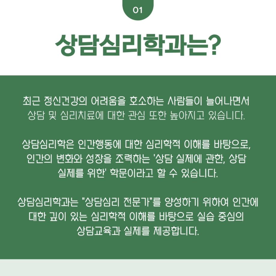본문 시작 홈으로 학과 커뮤니티 학부소개 교수소개 교육목표 입학안내 학과 커뮤니티 대학원 커뮤니티 홈페이지가이드 학과 갤러리 학과소식 학사일정 학과 갤러리 학과 갤러리 페이스북 트위터 프린트 상담심리학과 학과 소개 상담심리학과 1753 2024-07-24 목록 이전상담심리학 도서 추천 다음 상담심리학과 교과과정 & 전공 정보 만족도조사 만족도 조사 이 페이지에서 제공하는 정보에 대하여 만족하시나요? 매우만족 만족 보통 불만족 매우불만족