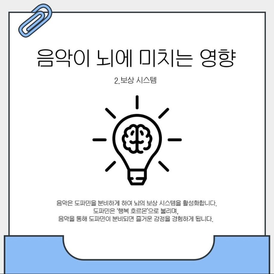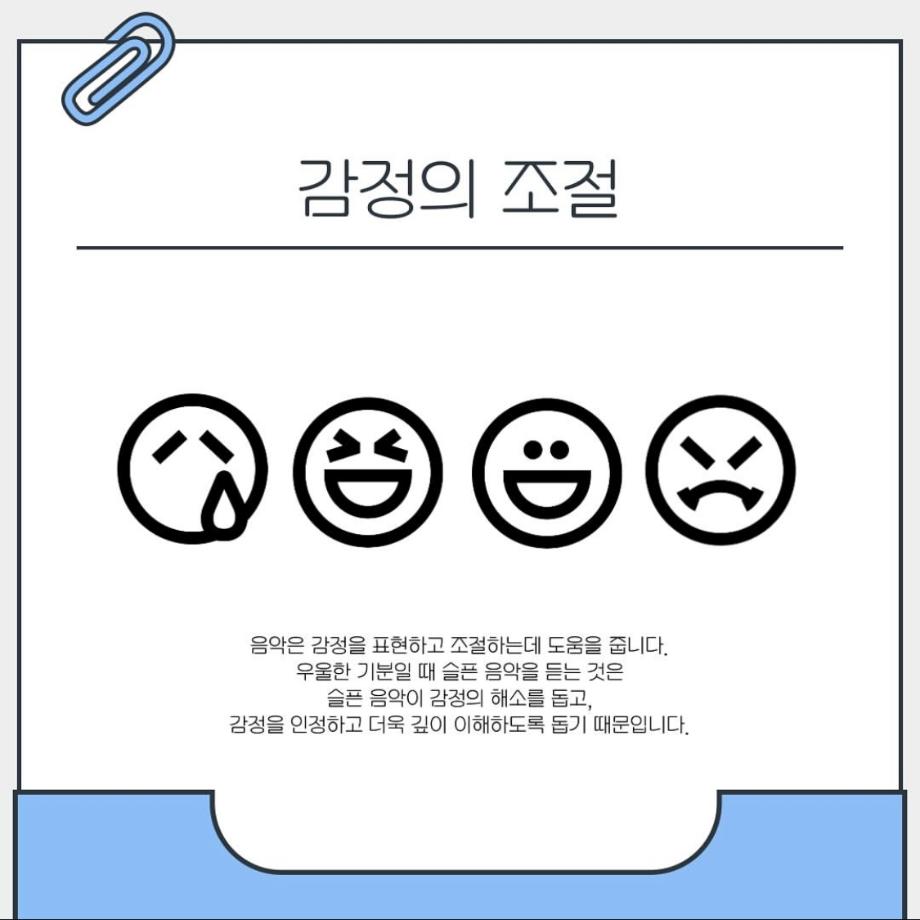 본문 시작 홈으로 학과 커뮤니티 학부소개 교수소개 교육목표 입학안내 학과 커뮤니티 대학원 커뮤니티 홈페이지가이드 학과 갤러리 학과소식 학사일정 학과 갤러리 학과 갤러리 페이스북 트위터 프린트 음악이 심리에 미치는 영향 상담심리학과 1384 2025-05-17 안녕하세요 세명대학교 상담심리학과 학생회 오비르입니다 ! 우리가 매일 듣는 음악이 심리에 미치는 영향이 있다는 사실을 알고 계신가요? 음악은 뇌의 편도체, 보상 시스템을 자극해 감정을 조절하는 역할을 합니다. 마음이 복잡할 때 음악을 통해서 자신의 감정을 인정하고 이해해보는 것은 어떨까요? (~˘▾˘)~♫•*¨*•.¸¸♪ 목록 이전운동과 상담심리 다음 상담심리학과 MT 일정 안내 만족도조사 만족도 조사 이 페이지에서 제공하는 정보에 대하여 만족하시나요? 매우만족 만족 보통 불만족 매우불만족