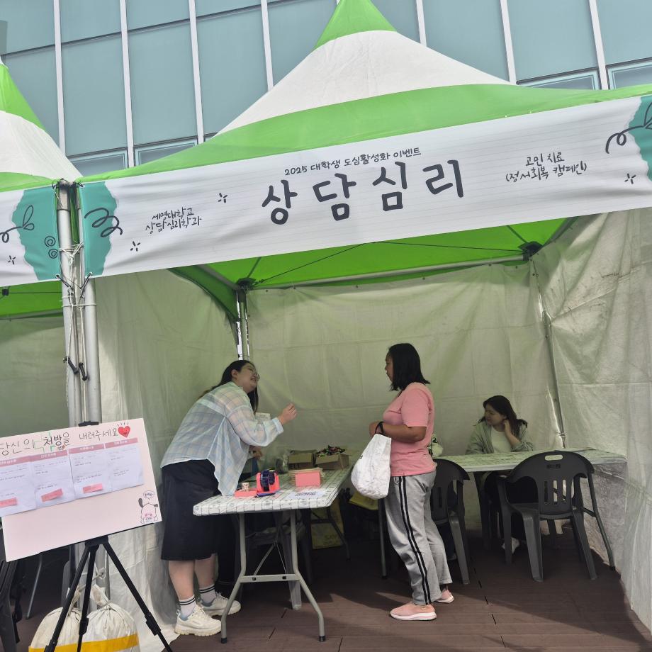본문 시작 홈으로 학과 커뮤니티 학부소개 교수소개 교육목표 입학안내 학과 커뮤니티 대학원 커뮤니티 홈페이지가이드 학과 갤러리 학과소식 학사일정 학과 갤러리 학과 갤러리 페이스북 트위터 프린트 2025 대학생 도심활성화 이벤트 상담심리학과 527 2025-10-14 안녕하세요 세명대학교 상담심리학과입니다! 9월 30일에 진행된 2025 대학생 도심활성화 행사에서 상담심리학과 학생들이 '마음약국'이라는 부스로 정서회복 캠페인을 진행했습니다. ( ·•︡_•︠)ʕ𐭩 다양한 사람들의 고민을 듣고 공감과 위로를 전하는 의미 있는 시간이었습니다. 앞으로 이런 기회가 더 많아지길 바라며, 큰 고민 없이 행복한 날들이 이어지길 바랍니다 :) 목록 이전GRIT 동아리 봉사활동 다음 2025학년도 Step Up! SMU창업캠프 및 경진대회 만족도조사 만족도 조사 이 페이지에서 제공하는 정보에 대하여 만족하시나요? 매우만족 만족 보통 불만족 매우불만족