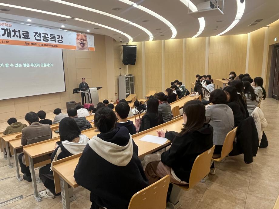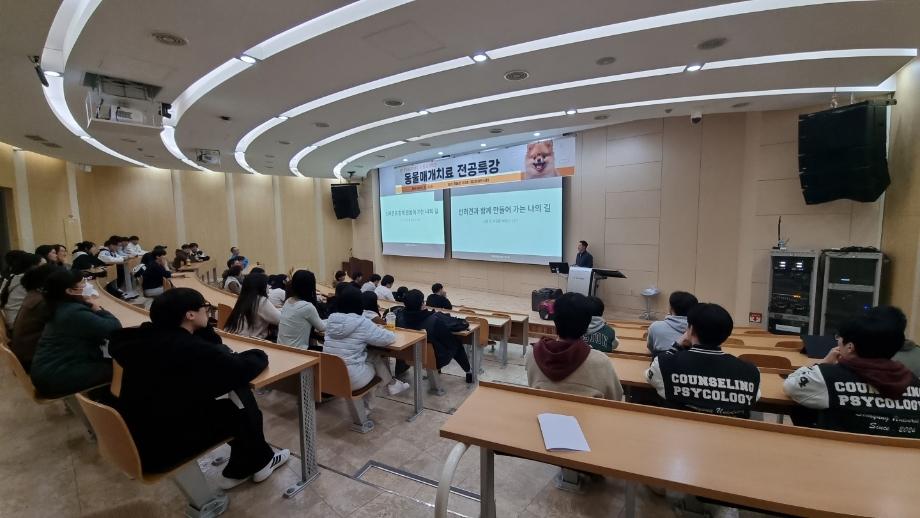 본문 시작 홈으로 학과 커뮤니티 학부소개 교수소개 교육목표 입학안내 학과 커뮤니티 대학원 커뮤니티 홈페이지가이드 학과 갤러리 학과소식 학사일정 학과 갤러리 학과 갤러리 페이스북 트위터 프린트 동물매개치료 전공특강 상담심리학과 417 2025-11-10 안녕하세요 세명대학교 상담심리학과입니다! 지난 5일 학술관 컨퍼런스홀에서 동물매개치료 전공특강이 진행되었습니다! 동물매개치료 관련 이론을 배우며 전공 능력을 함양할 수 있는 뜻깊은 시간이었습니다 :) 목록 다음 2025학년도 Step Up! SMU창업캠프 및 경진대회 다음 나와 어울리는 심리이론은? 만족도조사 만족도 조사 이 페이지에서 제공하는 정보에 대하여 만족하시나요? 매우만족 만족 보통 불만족 매우불만족