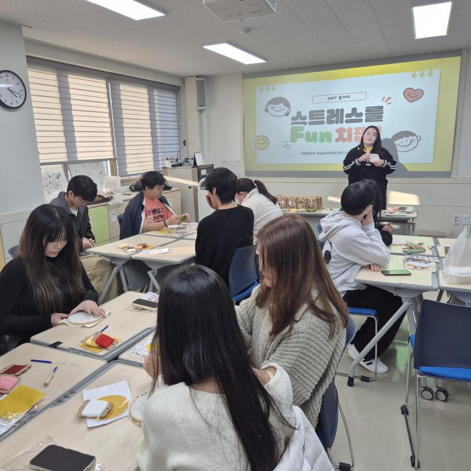 본문 시작 홈으로 학과 커뮤니티 학부소개 교수소개 교육목표 입학안내 학과 커뮤니티 대학원 커뮤니티 홈페이지가이드 학과 갤러리 학과소식 학사일정 학과 갤러리 학과 갤러리 페이스북 트위터 프린트 GRIT 동아리 봉사활동 상담심리학과 465 2025-12-23 안녕하십니까 세명대학교 상담심리학과입니다. 상담심리학과 동아리 GRIT은 제천시청소년상담센터에 방문해서 학교 밖 청소년을 대상으로 '스트레스 FUN치팝'-펀치니들 활동을 진행했습니다! 🧶🪡 펀치니들 키트로 활용해 컵받침을 만들며 학교 밖 청소년의 교우관계 증진시키고 학업 스트레스를 완화하고자 기획된 활동이었는데요! 참여 청소년들에게 따뜻한 기억으로 남았기를 바랍니다 :) 목록 이전2025학년도 2학기 기말고사 다음 심리상담에 대한 오해 만족도조사 만족도 조사 이 페이지에서 제공하는 정보에 대하여 만족하시나요? 매우만족 만족 보통 불만족 매우불만족